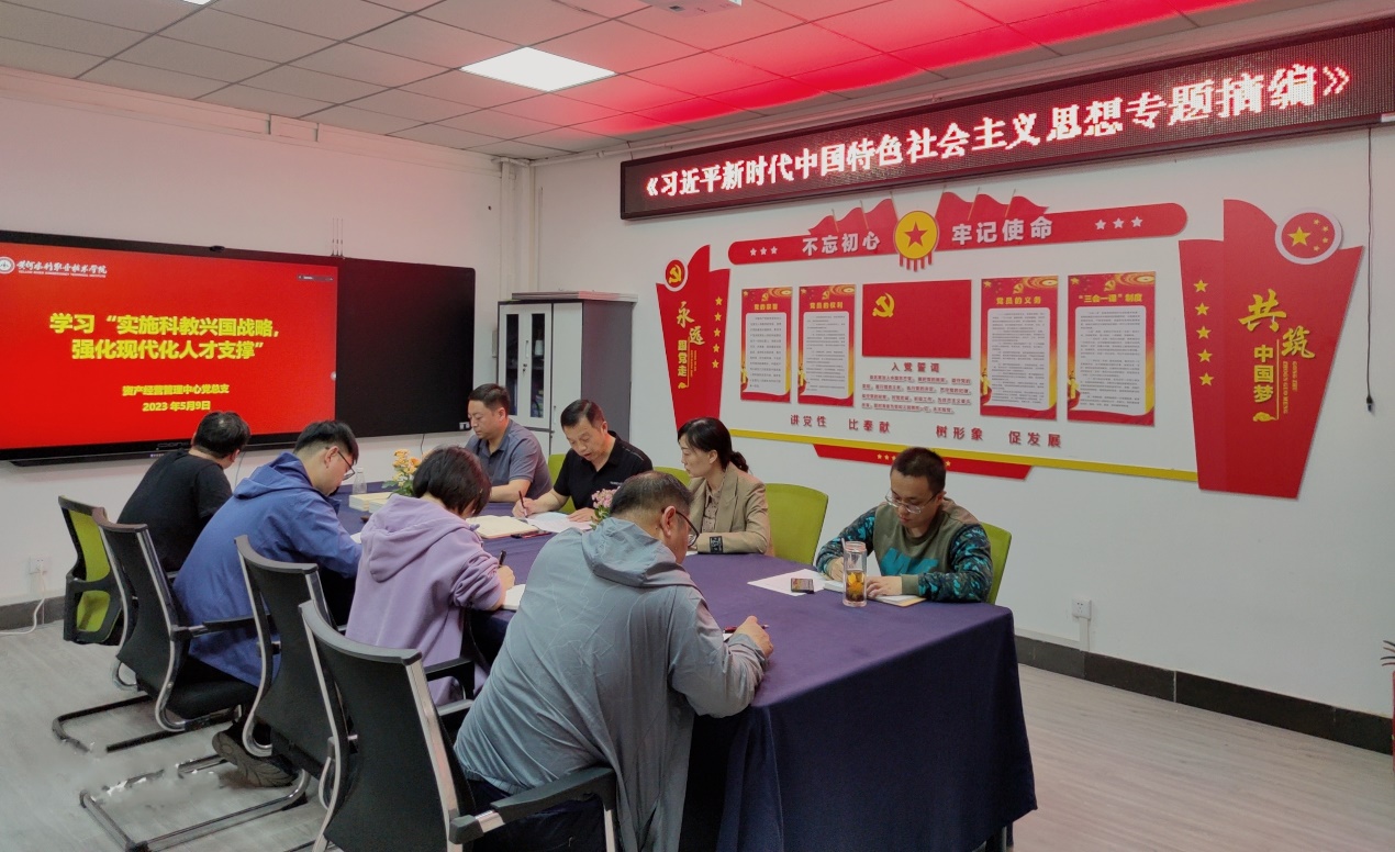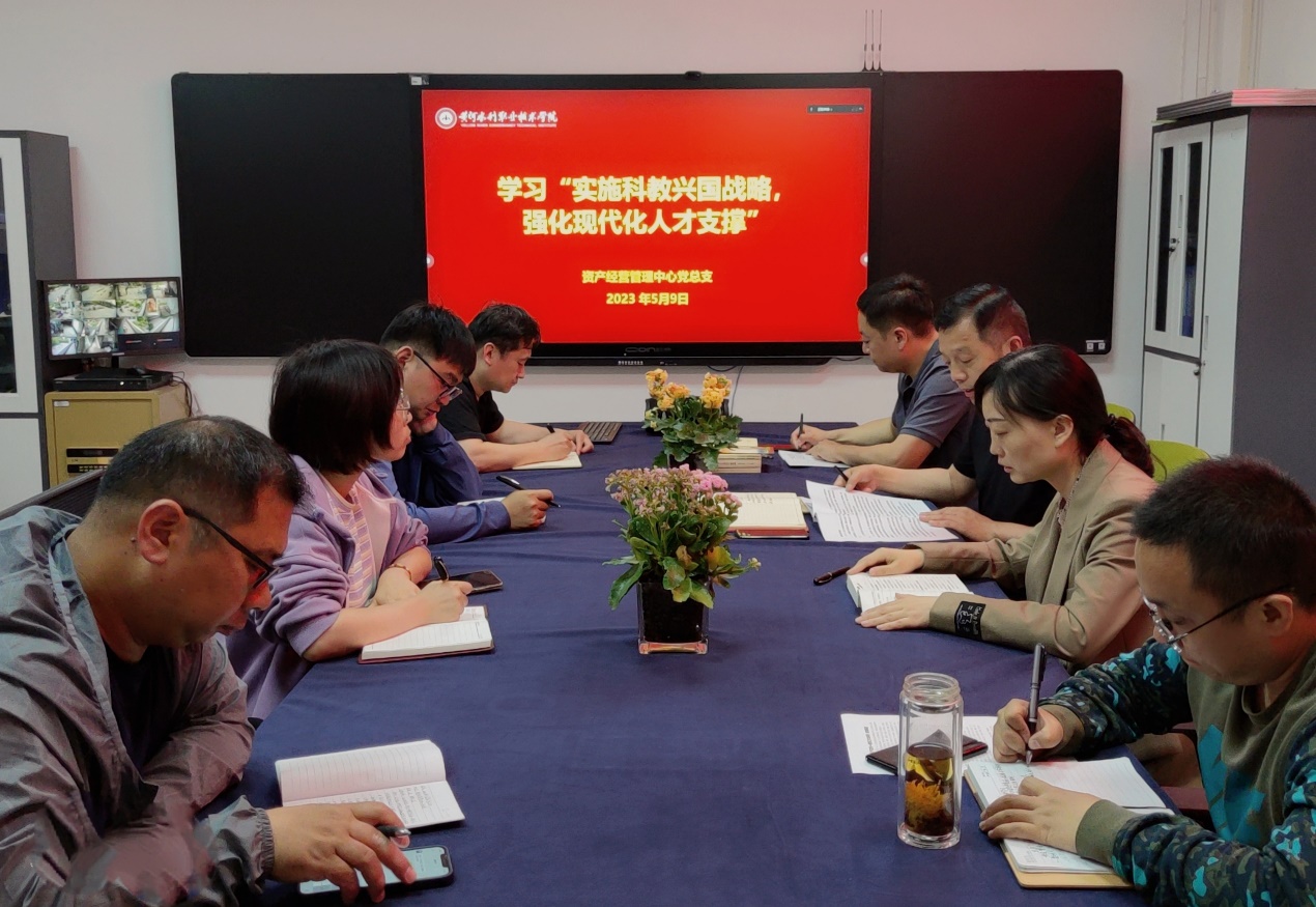 5月9日下午,资产经营管理中心党总支学习贯彻习近平新时代中国特色社会主义思想主题教育,集中学习了《习近平新时代中国特色社会主义思想专题摘编》中的篇目“实施科教兴国战略,强化现代化人才支撑”。本次学习由资产经营管理中心党总支书记鄢彬彬领学,全体党员参加学习。