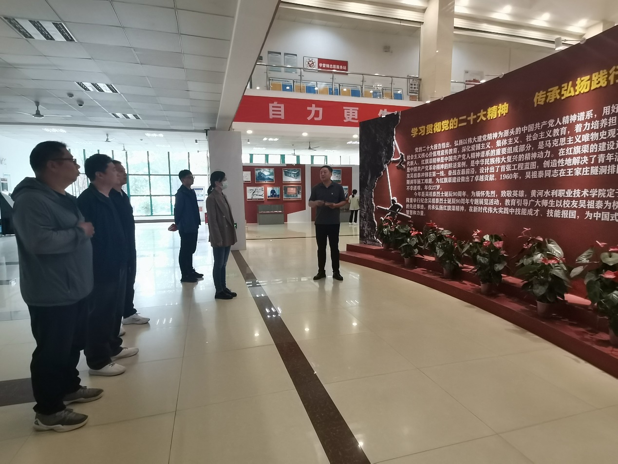 为进一步落实学习贯彻习近平新时代中国特色社会主义思想主题教育工作要求,弘扬伟大的红旗渠精神,深入学习吴祖太先进事迹,5月12日,资产经营管理中心党总支组织全体党员到学生活动中心“黄河水利职业技术学院优秀校友红旗渠设计师吴祖泰事迹展”的现场进行观摩学习,学习活动由二支部书记关震同志主持。