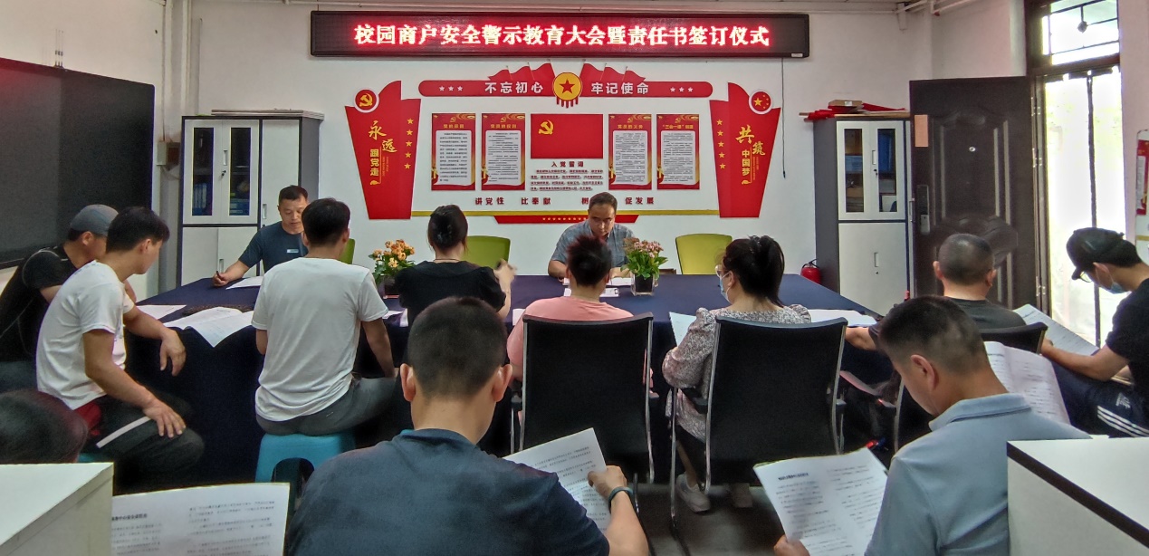 为了进一步提高校园商铺从业人员的食品安全、消防安全意识,有效防范安全隐患和减少安全事故的发生,落实安全管理工作。5月18日资产经营管理中心召开安全工作会议,并组织全体商户召开安全警示教育大会。会议由资产经营管理中心主任周晓峰主持。