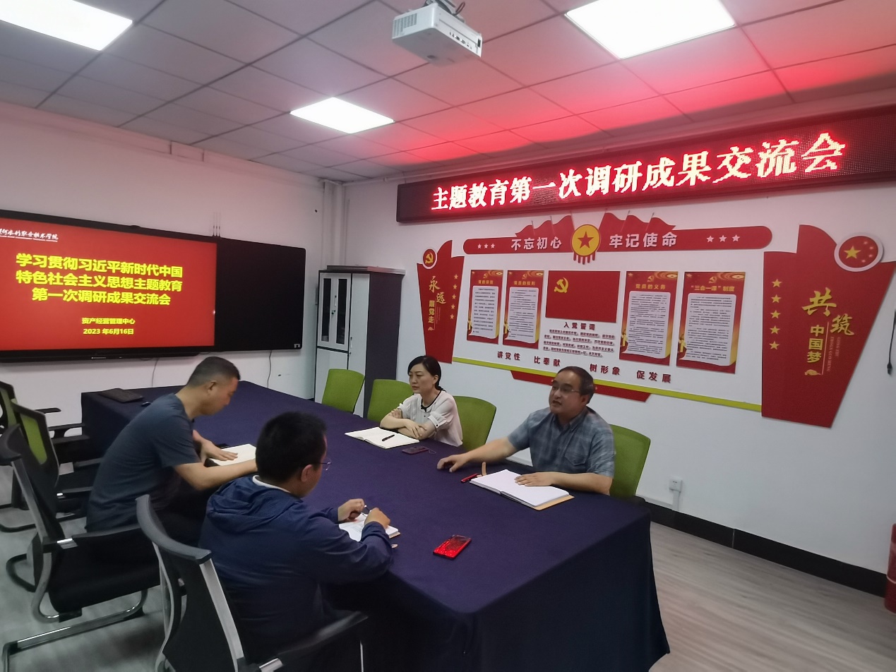 6月6日资产经营管理中心领导班子召开学习贯彻习近平新时代中国特色社会主义思想主题教育第一次调研成果交流会,会议由资产经营管理中心党总支书记鄢彬彬主持,主任周晓峰,副主任成继恩、张志峰参会。
