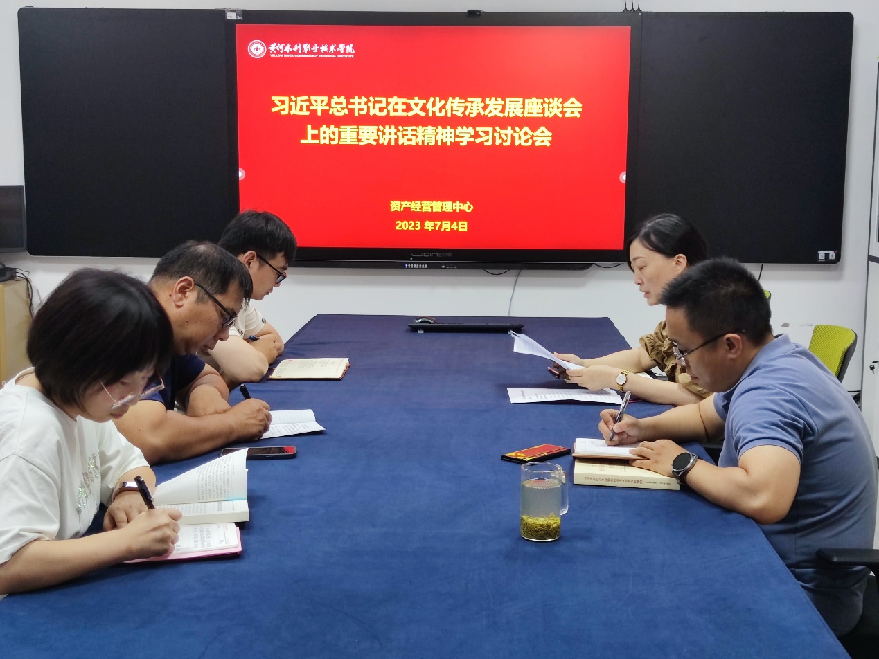 7月4日,资产经营管理中心党总支围绕习近平总书记在文化传承发展座谈会上的重要讲话精神开展学习讨论会,会议由资产经营管理中心党总支书记鄢彬彬主持,全体党员参加学习。