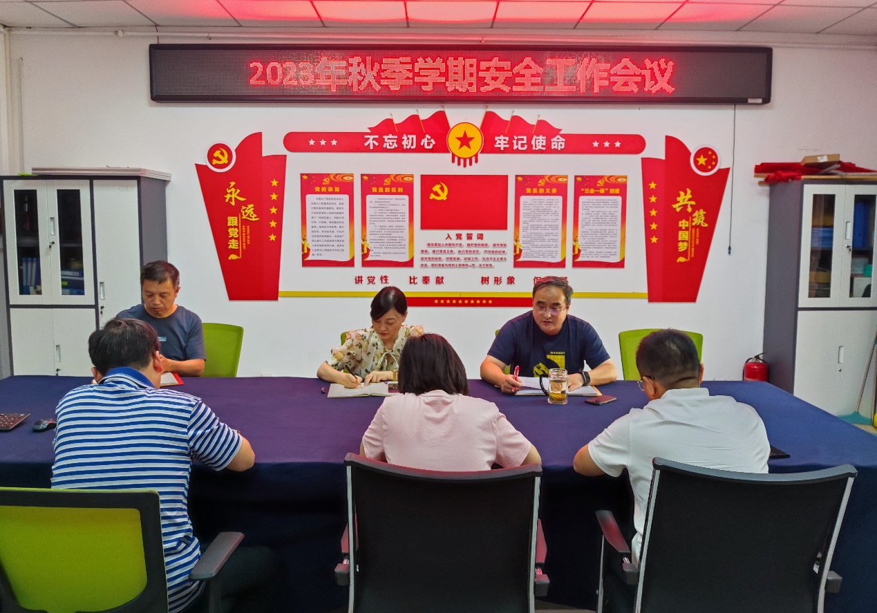 为切实做好新学期开学及迎新的各项准备工作,以更安全、更贴心、更舒适的服务迎接师生员工返校,9月4日,资产经营管理中心组织召开2023年秋季学期安全工作会议,会议由资产经营管理中心主任周晓峰主持,全体成员参加会议。