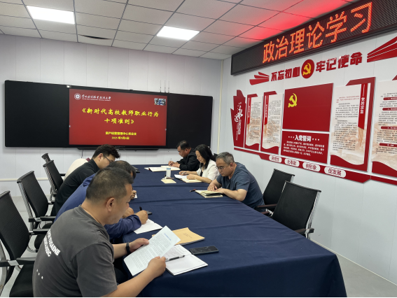 王康康和赵双庆分别领学了《教育部关于高校教师师德失范行为处理的指导意见》和《新时代高校教师职业行为十项准则》。