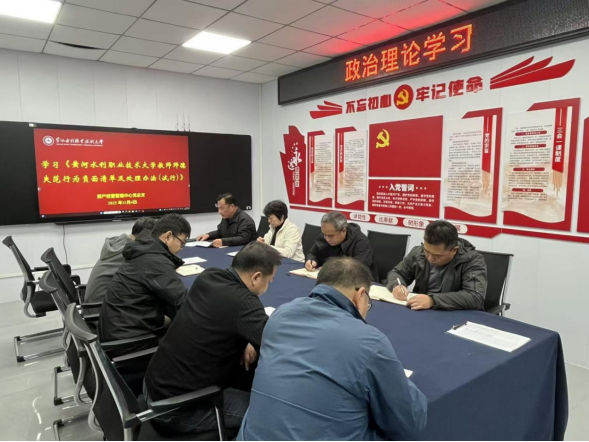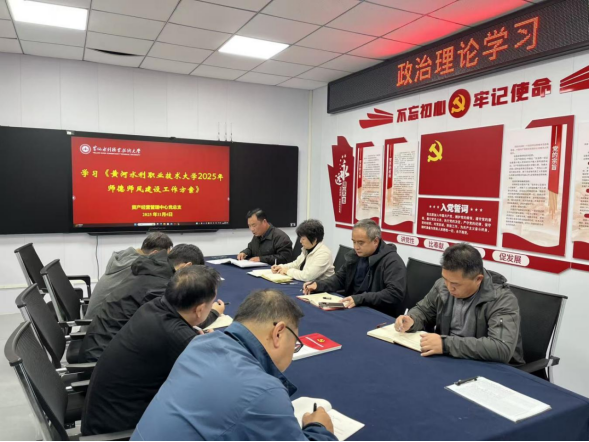 随后,蔡寄平带领大家学习了《黄河水利职业技术大学教师师德失范行为负面清单及处理办法(试行)》和《黄河水利职业技术大学2025年师德师风建设工作方案》,进一步明确了师德行为的底线红线。