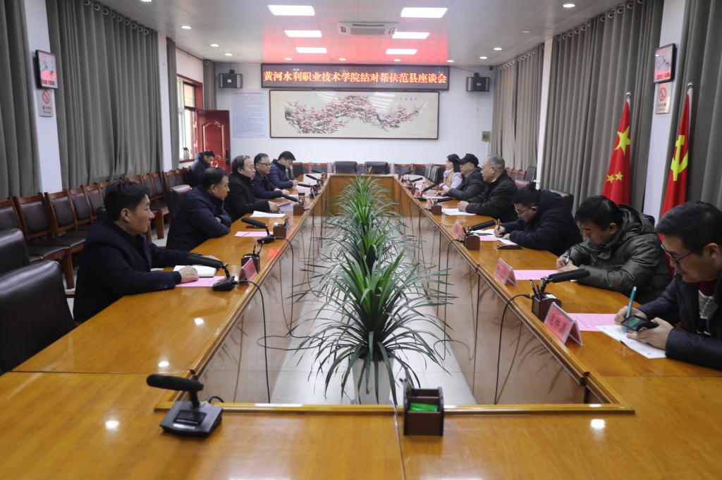 调研座谈会上,杨士恒介绍了学校2023年在“双高计划”验收、职业本科申报等大事上的进展情况和取得的成绩,全面总结了我校近年多来帮扶范县的工作开展情况,并安排了下一步双方校地结对帮扶的工作计划。郭献忠对校党委的帮扶工作表示衷心感谢,并介绍了范县乡村振兴工作的最新进展,并希望学校能够继续发挥科技、人才、智力等方面优势,为范县巩固脱贫攻坚成果、全面推进乡村振兴提供更多有力的支持帮助。