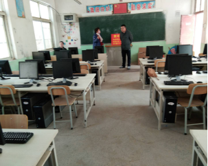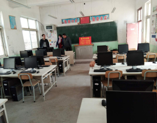 4.2018年3月12日,扶贫工作队成员王振强、陶攀,村主任李建民到郭景村小学查看黄河水院捐建电子阅览室建设情况,该小学校长刘翠萍详细介绍了目前的建设进展情况,为后续的信息化技术培训奠定了坚实的基础。