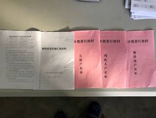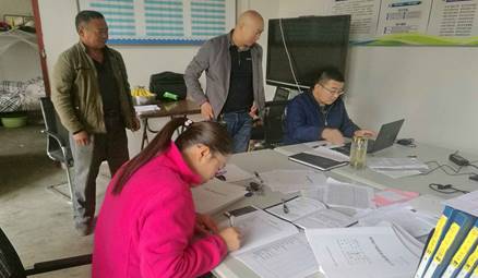 11.2017年10月15日,扶贫工作队成员王振强、陶攀、包村干部王建兵、村主任李建民、村会计郭峰在扶贫工作办公室为迎接全省扶贫工作交叉检查,完善扶贫档案材料,将档案材料明白卡顺序按照河南省扶贫信息库名单顺序编排,并对材料内容进行完善。按照检查要求撰写了扶贫工作总结、村级汇报材料总结和驻村第一书记问答才,整理了全村花名册、贫困户名单、低保户名单、五保户名单、老人户名单、清退户名单和残疾人户名单,为全省扶贫工作交叉检查做好准备。