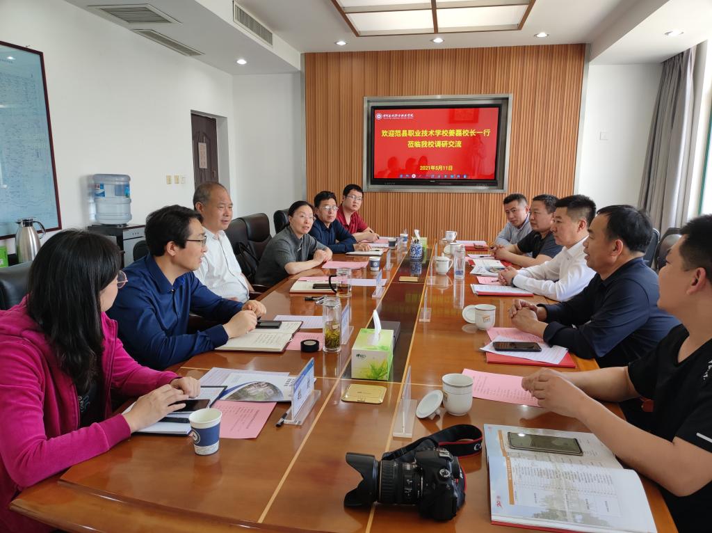 5月11日上午,范县职业技术学校校长姜磊一行5人来我校考察交流中高职衔接、专业共建、师资交流培训和实训基地建设等工作。我校副校长杨士恒出席座谈会,党委组织部、教务处、招生就业服务中心、测绘工程学院、电气工程学院等部门负责人参加了座谈交流。