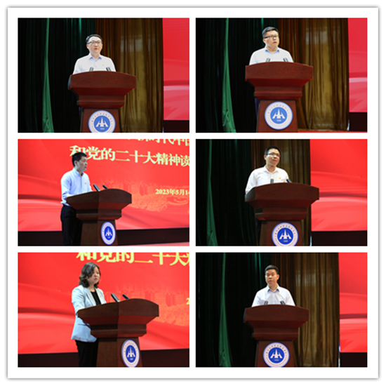 在专题报告环节,读书班邀请了省委教育工委专职副书记尹洪斌、河南工业大学原常务副校长赵豫林、省委党校决策咨询部副主任涂小雨分别以《认真学习贯彻党的二十大精神 担负起谱写教育强省建设新篇章的时代重任》《新时代 新思想 新使命——深入学习习近平新时代中国特色社会主义思想》《新时代 新征程 全面从严治党的新形势新要求》为题进行了三场专家辅导报告。在交流发言环节,学生工作部部长李聪、计划财务处处长王国英、招生就业服务中心主任商坤、水利工程学院院长雷恒、测绘工程学院党总支书记高琼、马克思主义学院院长焦红强等分别围绕学习收获、思想触动,结合各自工作分享了学习体会。