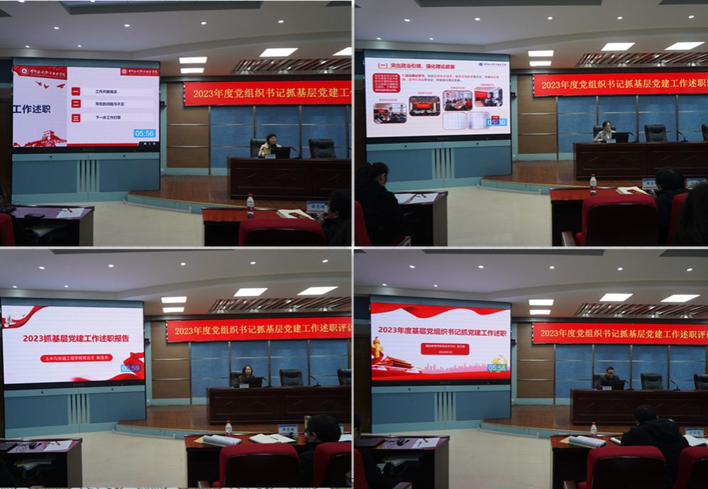 校党委书记周保平认真听取述职发言并作总结讲话。她指出,2023年全校各级党组织认真学习贯彻习近平新时代中国特色社会主义思想和党的二十大精神,严格落实上级党组织的决策部署,深入开展主题教育,扎实开展党建工作,以高质量党建推进学校中心工作和重点任务落实,党建工作和事业发展均取得突出成绩。就下一步如何做好党建工作,她要求,各级党组织负责人要始终坚持以习近平新时代中国特色社会主义思想为指导,锚定学校跨越式发展的目标,从实现事业高质量发展的高度强化使命担当,推动基层党组织建设全面进步全面过硬。一要强化政治建设,以更高站位把牢办学方向。要坚持以党的政治建设为统领,始终做到旗帜鲜明讲政治,坚决贯彻落实中央、省委各项重大决策部署,有序将学校第三次党代会谋划的发展路径,落实到办学治校的具体行动中。二要强化基层基础,以更大力度夯实党建根基。要深入学习贯彻落实《中国共产党普通高等学校基层组织工作条例》,优化基层党组织设置,建设高素质干部队伍,深入实施党建工作示范创建和质量创优,不断增强基层党组织政治功能和组织力。三要强化思政育人,以更高要求落实根本任务。要坚持立德树人根本任务,实施培根铸魂工程,构建大思政工作格局,切实把思政工作贯穿教育教学全过程,实现全程育人、全方位育人。四要强化从严治党,以更严标准营造良好政治生态。要推进全面从严治党向纵深发展,持续营造学的氛围、严的氛围、干的氛围,构建干事创业良好生态,以务实之风推动学校发展再上新台阶。五要强化校园安全,以更强担当维护学校稳定大局。要全面落实上级关于学校安全工作的决策部署,增强安全意识,树牢底线思维,坚决防范化解重大风险,千方百计做好维护校园安全稳定工作。六要强化改革创新,以更强担当推动学校事业发展。要突出党建引领,强化组织保障,不断深化党建和业务的相互融合,求真务实、开拓创新,为学校“双高计划”建设验收和职业本科申办等各项事业发展提供坚强的组织保障,推进学校实现跨越式发展。