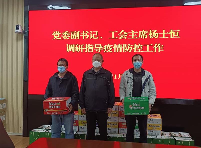 杨士恒指出,疫情防控期间一线值班的学工队伍和安全保卫队伍承担着落实防控措施、引领学生思想、组织核酸检测、心理咨询、隔离学生接送和校园安全保卫等多重任务,为了守护学生的健康与安全,值班人员克服困难,吃住均在学校,为疫情防控作出了突出贡献。他代表学校向大家表示衷心的感谢,并嘱咐大家做好防护、保重身体。为进一步做好疫情防控工作,织牢织密疫情防控严密防线,他提出了三点要求。一是要严格落实学校疫情防控工作部署要求,做好入校各种物品的消杀,严防输入,确保把病毒拒之门外。二是要充分认识疫情防控的严峻性、复杂性和不确定性,坚决克服麻痹思想、厌战情绪、侥幸心理、松劲心态,毫不放松抓紧抓实抓细各项防控工作。三是要抓好学生的思想教育工作,持续加强健康教育,引导学生严格遵守疫情防控有关规定,做好个人防护。