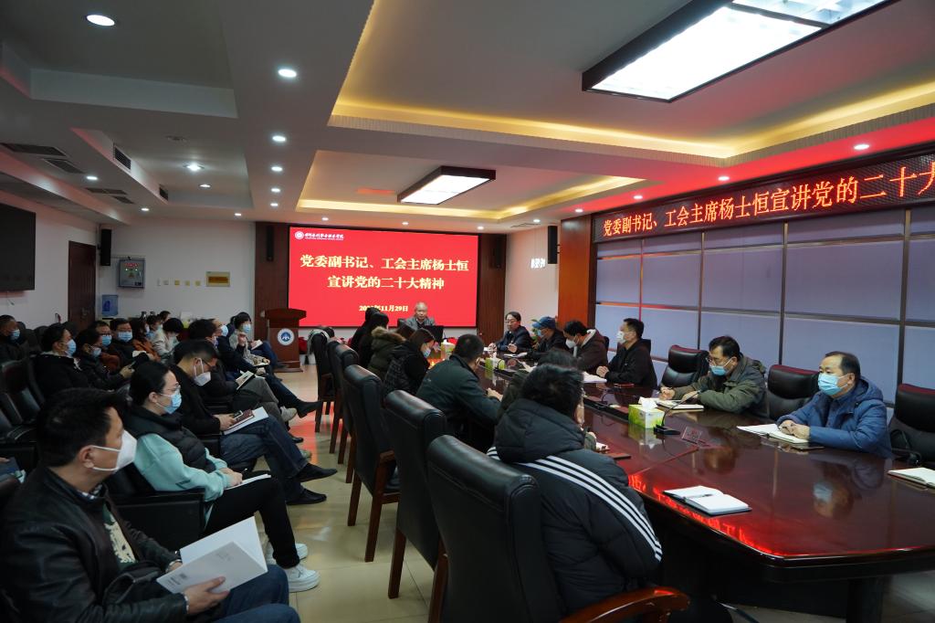 11月29日上午,校党委副书记、工会主席杨士恒在行政楼第一会议室作了题为《以中国式现代化推进中华民族伟大复兴》党的二十大精神宣讲报告。党委组织部、党委宣传部、学生工作部、一站式学生社区党工委、保卫部、离退休党总支、工会、团委、环境工程学院、旅游学院等单位负责人及科级以上干部参加了报告会。报告会由党委组织部部长周志琦主持。