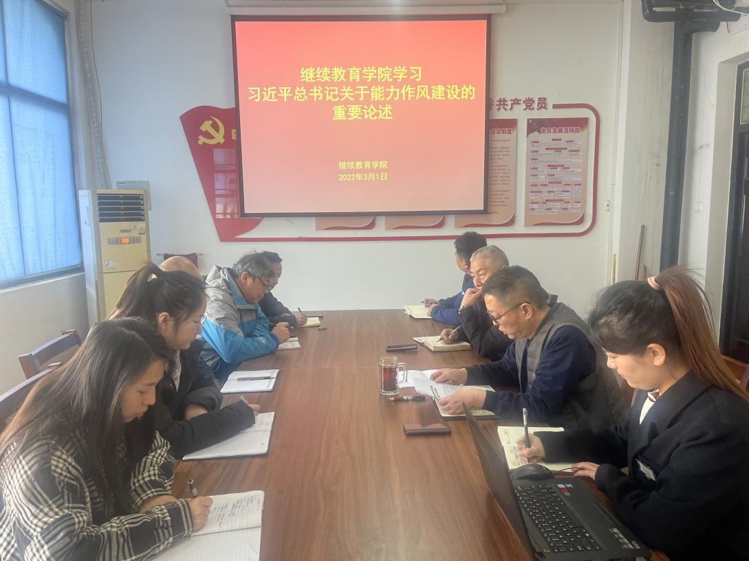 2022年3月1日,继续教育学院开展政治理论学习,全体教职工参加会议。会议由院长兼直属党支部书记薛建荣主持。