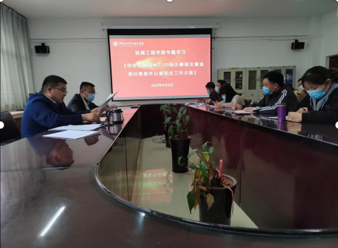 4月5日下午,机械工程学院召开专题学习《我校开展郑州“7·20”特大暴雨灾害追责问责案件以案促改工作方案》暨工作部署会。会议采取“线上+线下”相结合的方式举行,学院领导班子成员、科级干部、教研室主任、实训中心主任及全体坐班人员参加现场会,其他教职工参加视频会议。会议由院党总支书记王振强主持。