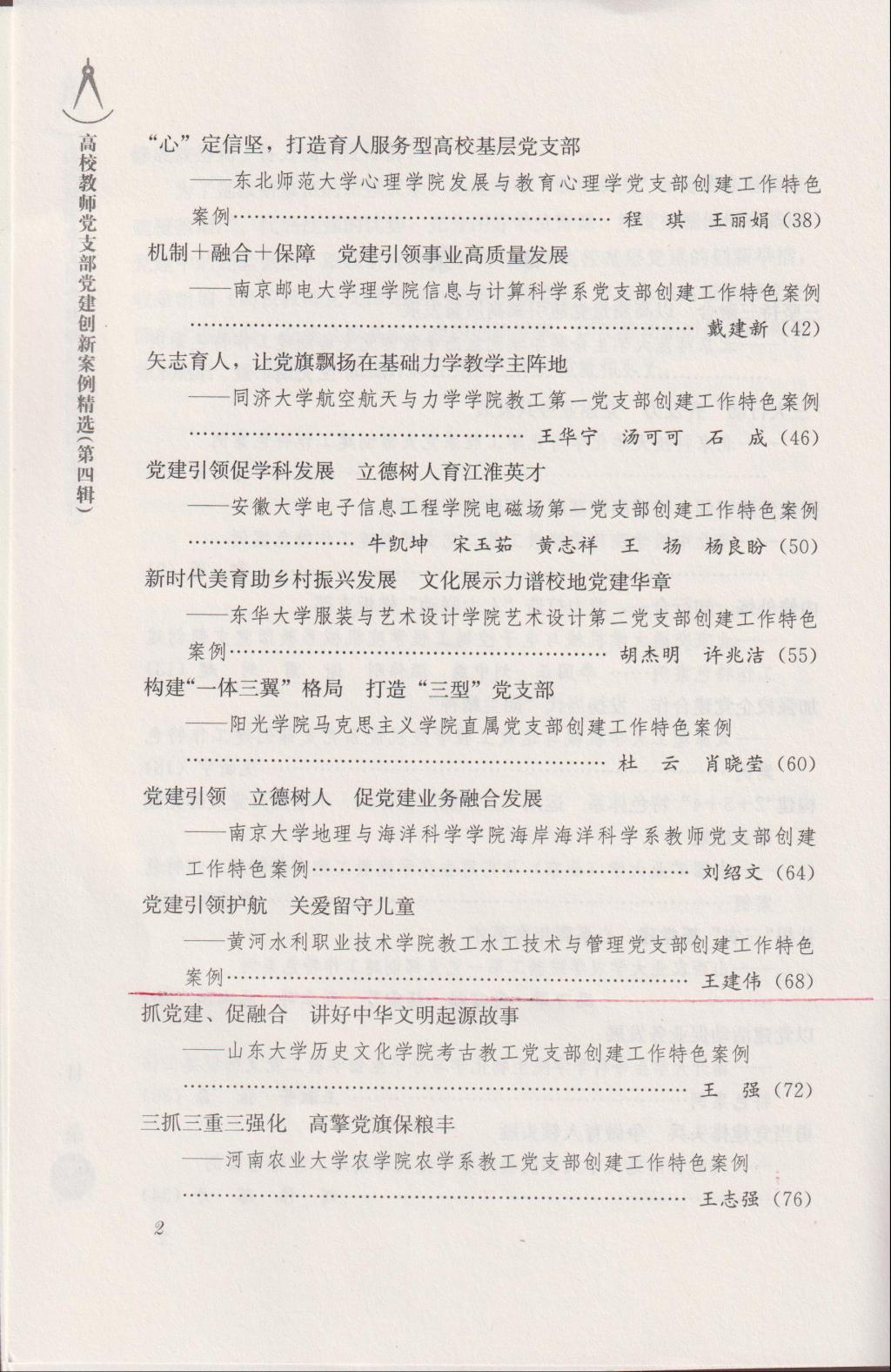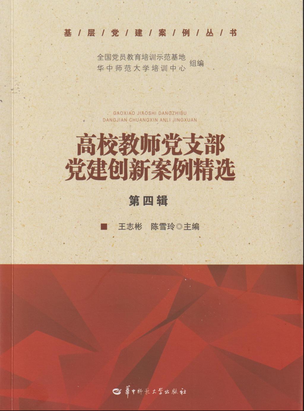 近日,由全国党员教育培训示范基地、华中师范大学培训中心组织编撰的《高校教师党支部党建创新案例精选》(第四辑)一书,经华中师范大学出版社正式出版全国发行。我校水利工程学院教工水工技术与管理党支部的特色案例《党建引领护航关爱留守儿童》入选。