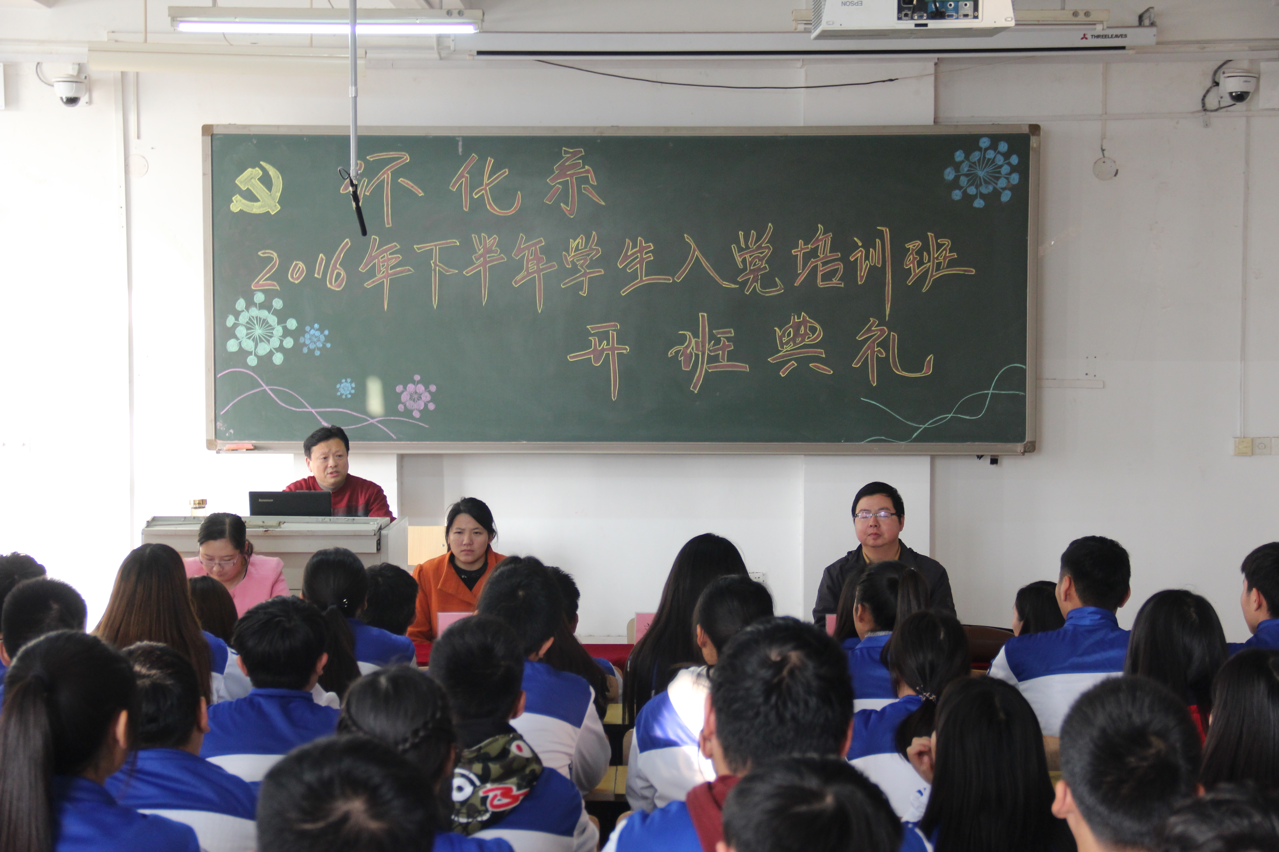 2016年11月5日早8点,环化系2016年下半年学生入党培训班在JX2203教室举行开班典礼,出席本次典礼的有环化系党总支书记刘岩、分团委书记武琳琳、15级辅导员马金菊和16级辅导员王恺。