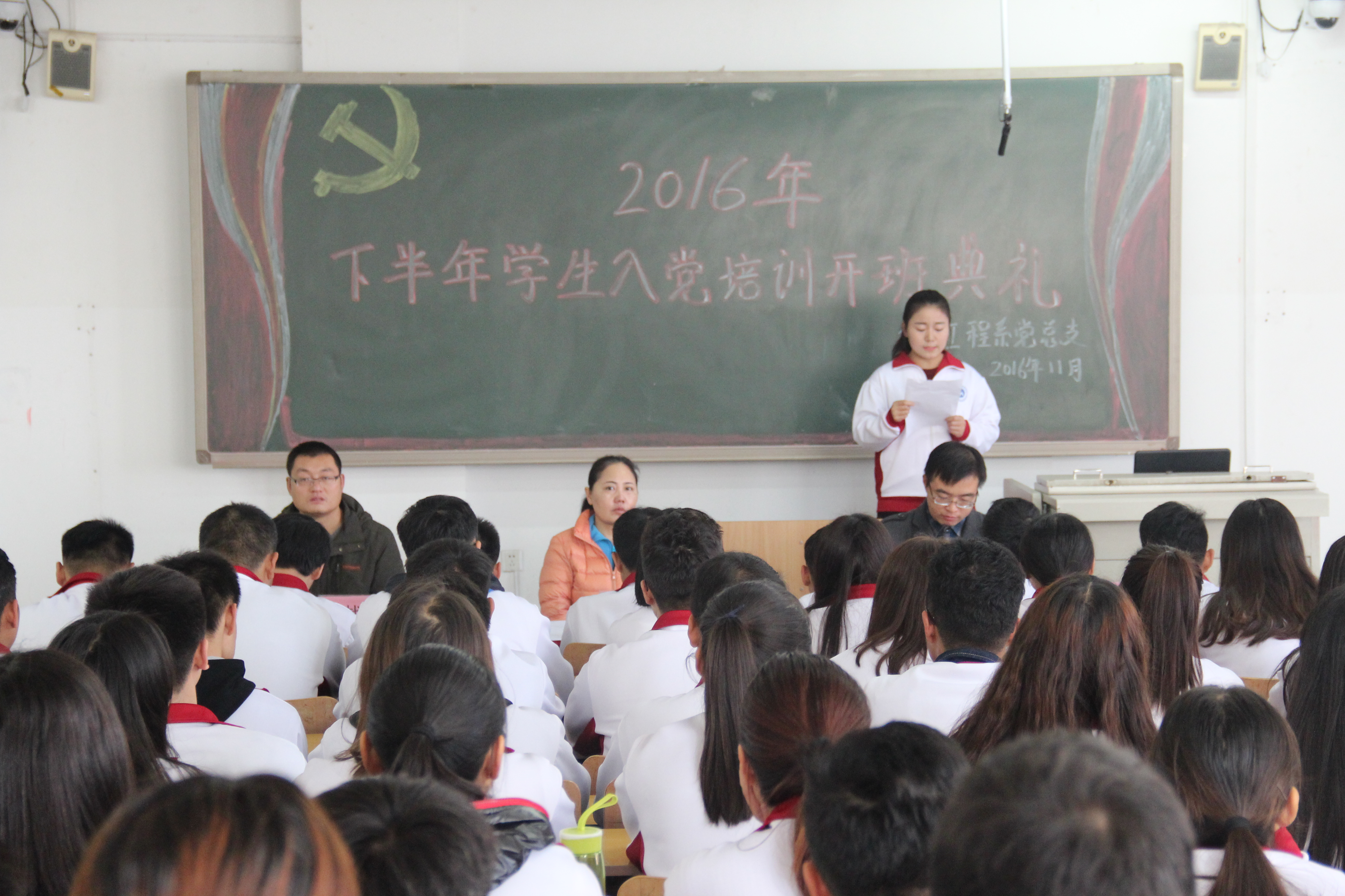 2016年11月5日上午8时,信息工程系在JX2401教室隆重举行第40期入党培训班开班典礼,党总支书记丁爱萍、分团委书记彭战松、16级辅导员贾红军和第40期党校学员出席了党校开班典礼,开班典礼由贾红军老师主持。