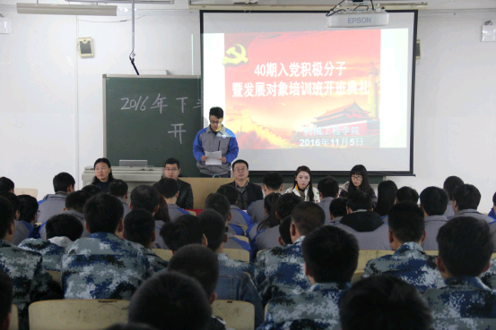 11月5日上午,机械工程学院第40期入党积极分子暨发展对象培训班开班典礼在JX2402隆重举行,出席此次开班典礼的有院党总支书记孙天星、党总支办公室主任暨分团委书记侯静、学生第二党支部书记曹林英、16级辅导员翟保尊、魏倩。我院34名发展对象和134名党课培训班学员参加了本次开班仪式。