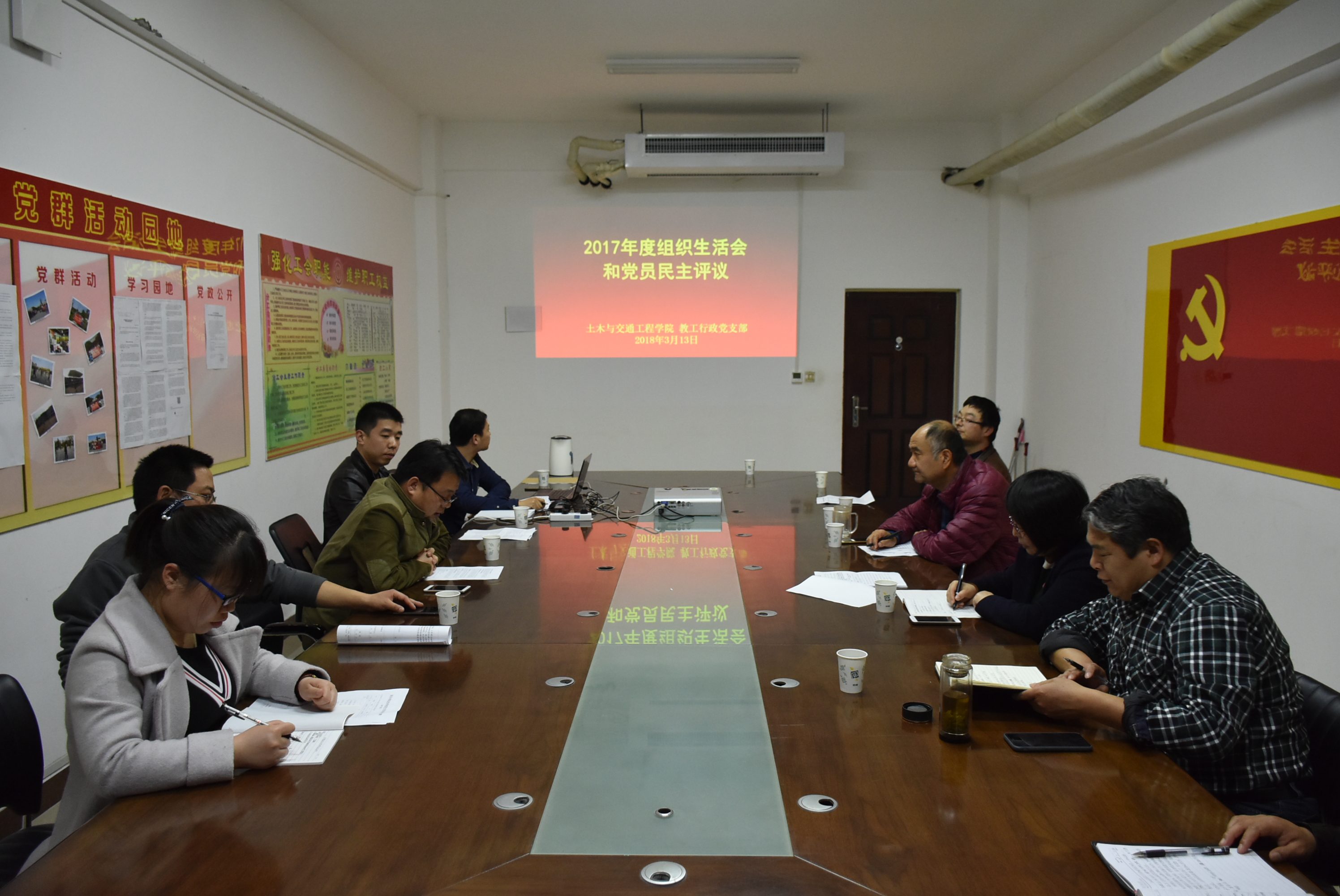 2018年3月13日,根据学校文件要求,为认真学习贯彻习近平新时代中国特色社会主义思想和党的十九大精神,引导党员自觉尊崇党章,充分发扬党内民主,增强党支部政治生活的政治性,推进深化“两学一做”学习教育常态化制度化,土木与交通工程学院教工行政支部SY5330召开组织生活会和民主评议党员大会。此次大会由教工行政支部书记朱一飞主持,校长祝玉华以普通党员身份参加会议。