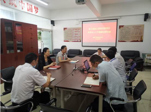 研讨会上,支部书记朱曙光首先介绍了“双带头人”工作室建设进展情况及目前存在的问题,接着分析了建设措施的可行性。党总支书记纪勇和学生支部书记李忠旺等同志提出了如何在三全育人、“1+X”证书培训及党务培训、班主任制度、党群共建、特色品牌确立等方面发挥党员先锋模范作用及调动党员积极性的意见和建议。最后纪书记针对建设措施的可行性给出了指导,并强调了组织建设和纪律建设。