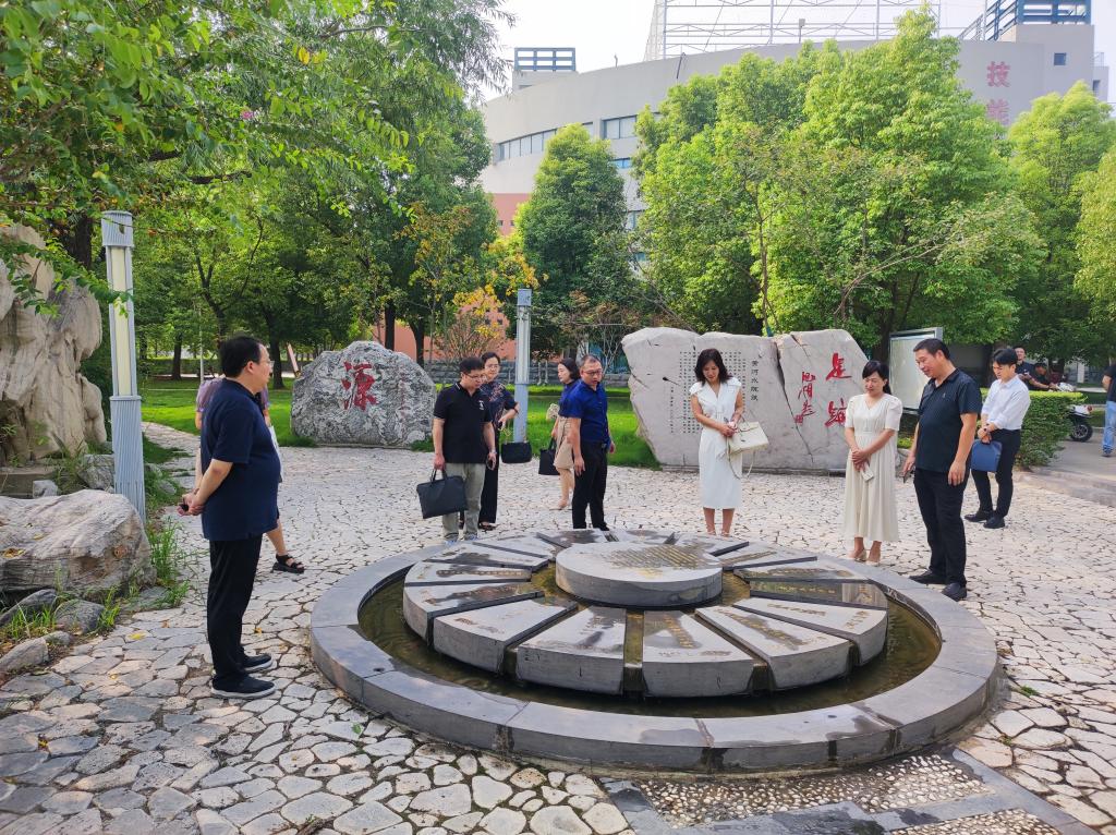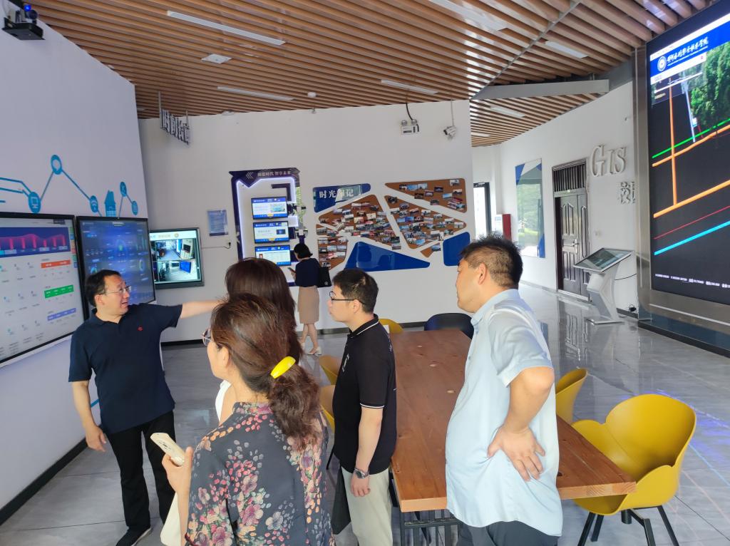 周志琦介绍了我校基本情况,汇报了“数智化”产教融合示范实训中心建设情况等工作。课题组一行实地调研了我校环境工程学院实训场馆,查看了“足迹”文化景观、智慧校园服务大厅、鲲鹏山水利水电仿真实训基地等。