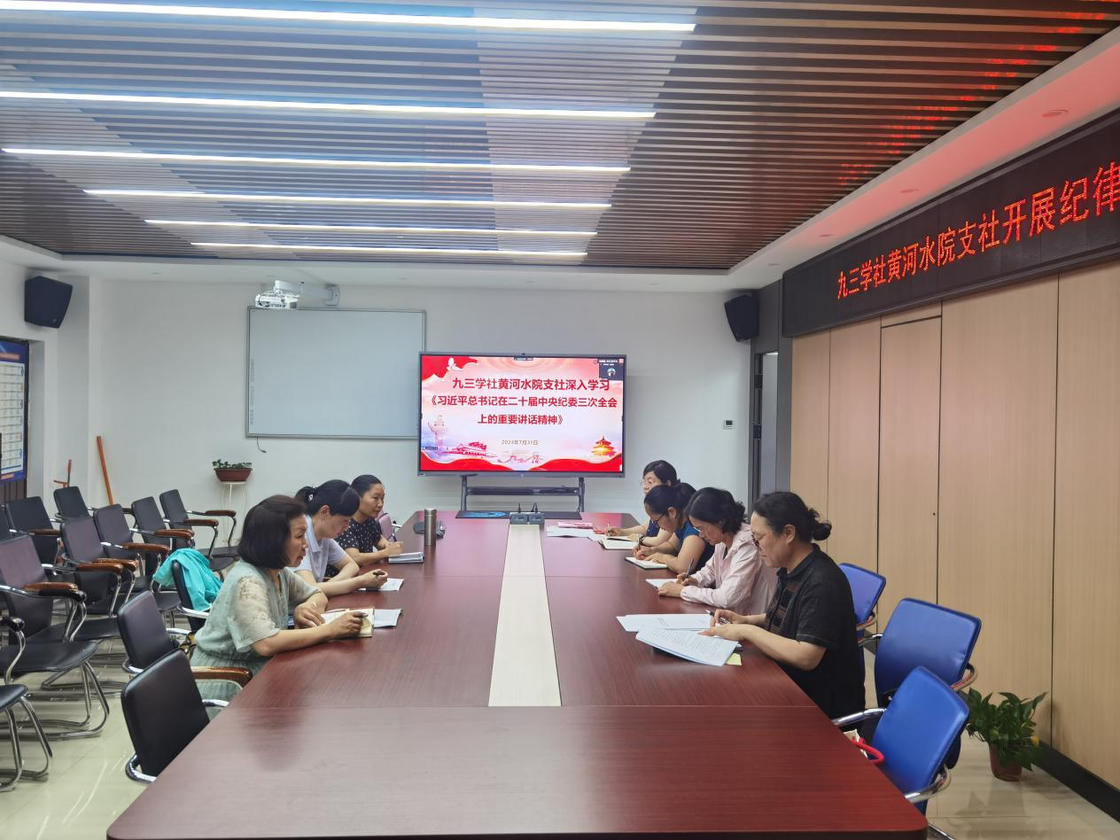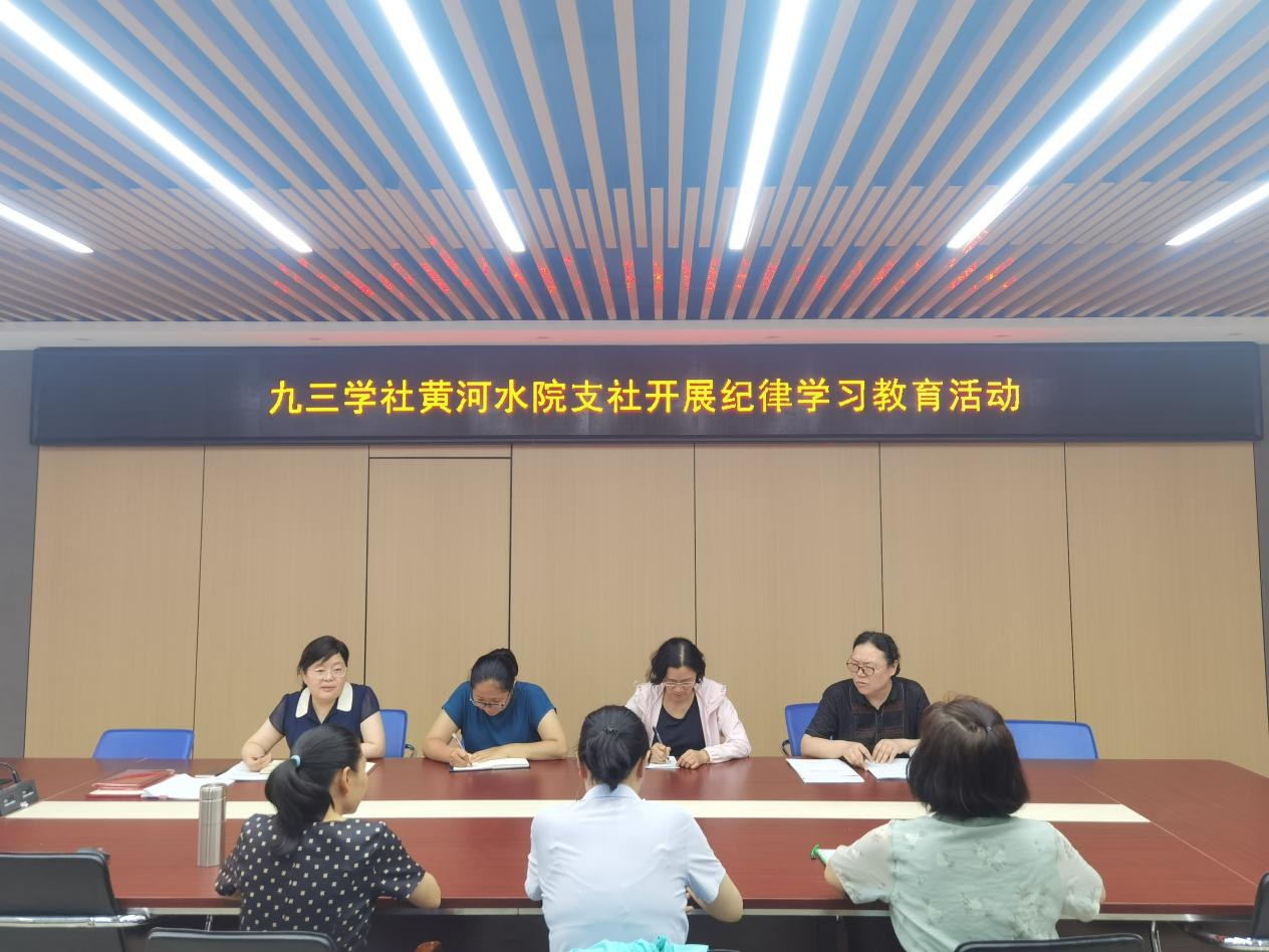 7月31日,九三学社黄河水院支社委员会在SY5412举行纪律学习教育活动,支社委员张会丽、李梅华和其他骨干社员参加,活动由支社主委张圣敏主持。